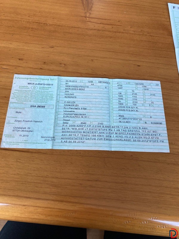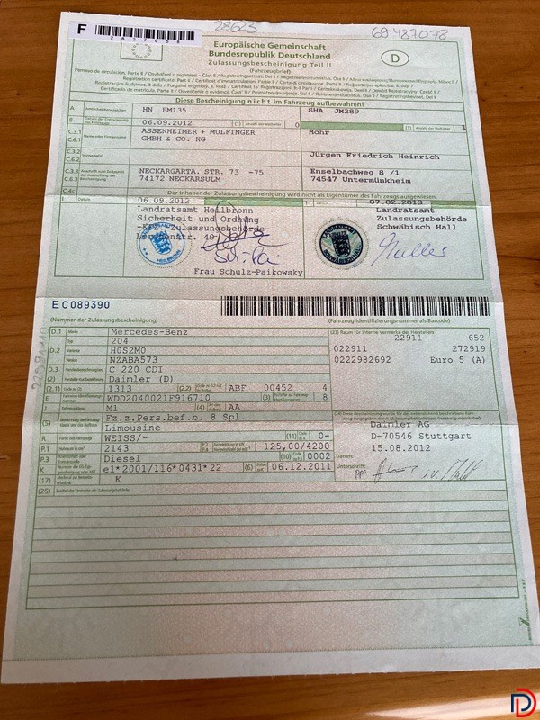 Interested parties are invited to submit bids in the public auction to be held on Tuesday, 14 April 2026, from 12:00 noon, for 1 used Mercedes-Benz 220 CDI passenger car, diesel, with TÜV valid until June 2026; mileage unknown. Bids will be accepted exclusively by telephone, in writing, or through online live bidding. All data and information made available by the creditor can be found on our website at deutsche-pfandverwertung.de under Auction Dates. The highest bid shall be accepted approximately 20 seconds after no higher bid has been received, whether submitted in writing, online, or by telephone, in accordance with Section 156 BGB. A buyer’s premium plus VAT shall apply in accordance with the published scale. The auction terms and conditions published on our website shall apply. Conducted by F. Eberhard Ostermayer, Publicly Appointed and Sworn Auctioneer.